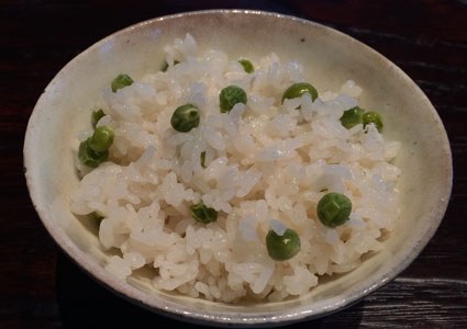 4)器にキャベツ、椎茸、菜の花、蛤を盛り、汁をかけ